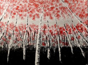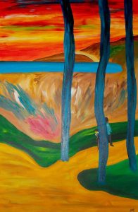 Replication of Gauguin’s Blue Trees. 24″ x 32″ Acrylic on Canvas